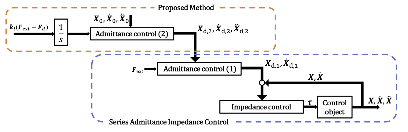 多重仮想ダイナミクスに基づく力制御における環境との接触喪失時のマニピュレータの運動